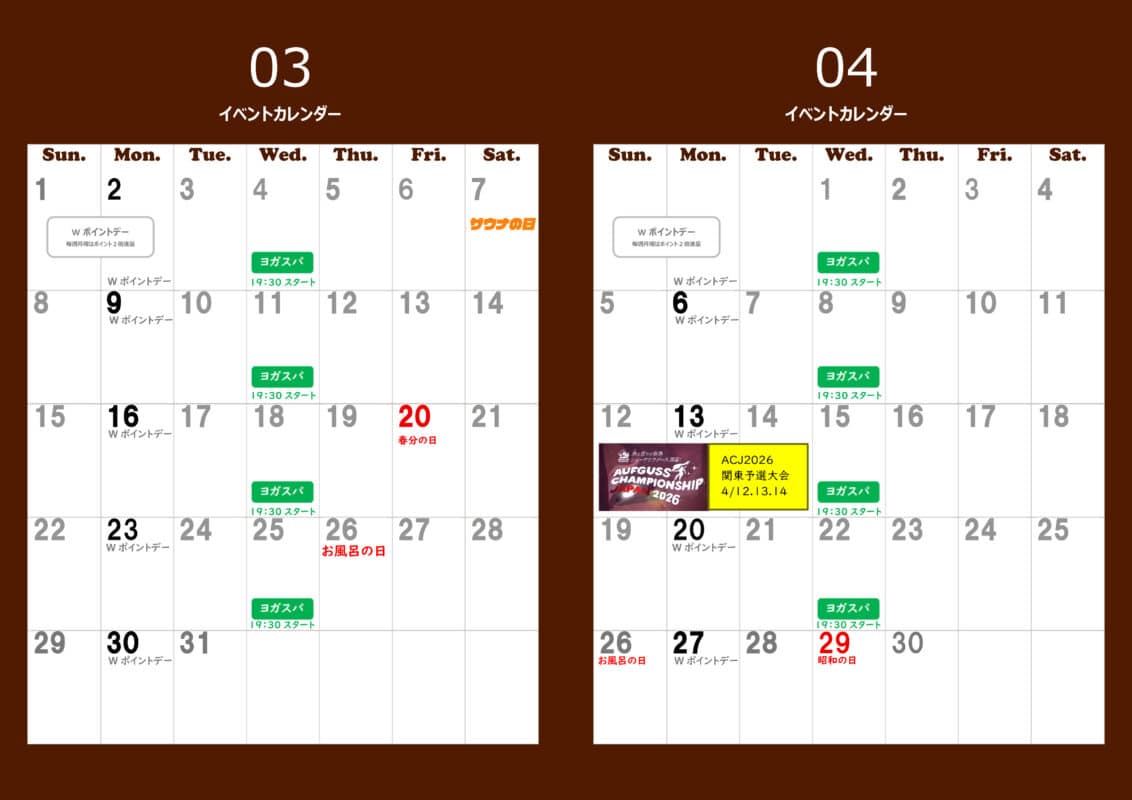 ドライサウナ(オートロウリュ)・ミストサウナ・水風呂・バイブラバス・寝湯バイブラ・美泡の湯・高濃度炭酸カルシウム温泉・休憩スペース