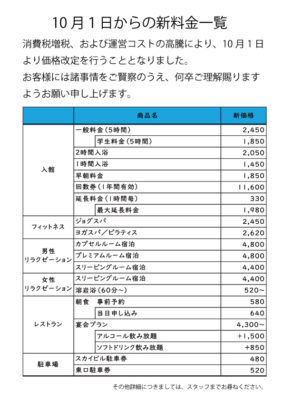 スカイスパをご愛顧いただきまし