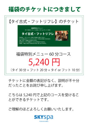 福袋チケット「タイ古式・フットリフレ」のご説明