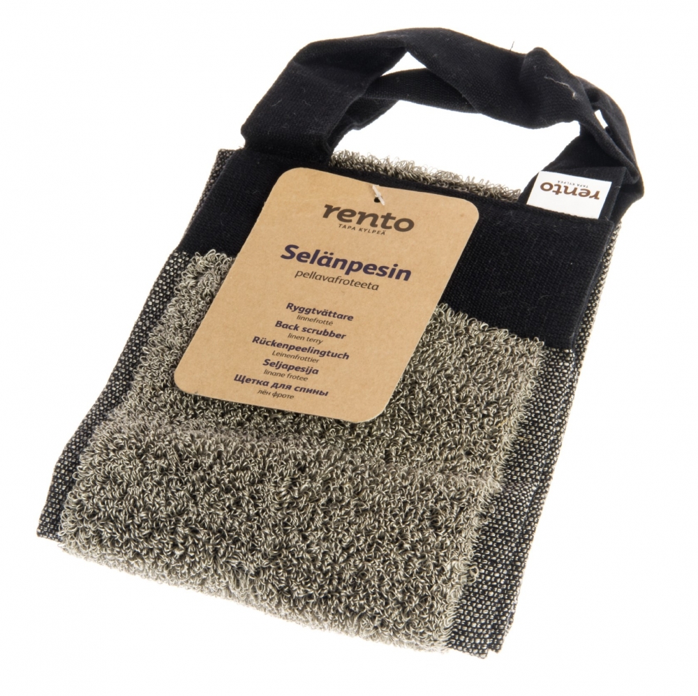 ヘルシンキの高級デパートでも取り扱われているフィンランドのサウナブランド「RENTO」の背中用スクラブタオルです。