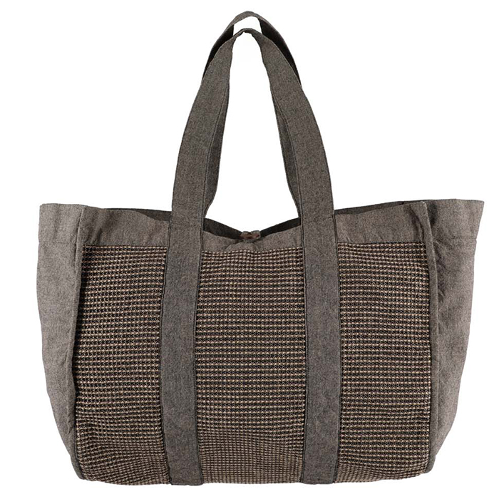 質感にこだわり、快適な使用感を実現しました。バスローブやタオルがすっぽり入る大判サイズ。留め具にはココナッツシェルを使用しています。