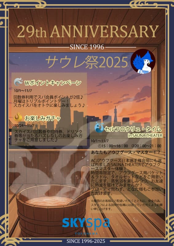 スカイスパYOKOHAMAは10月で29周年を迎えます。